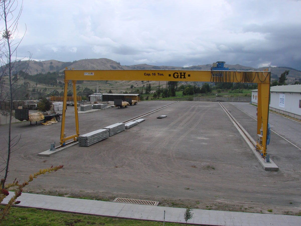 Fotos de la grúa pórtico de 16t instalada para Cementos Chimborazo, facilitadas por Fenix Ingeniería.