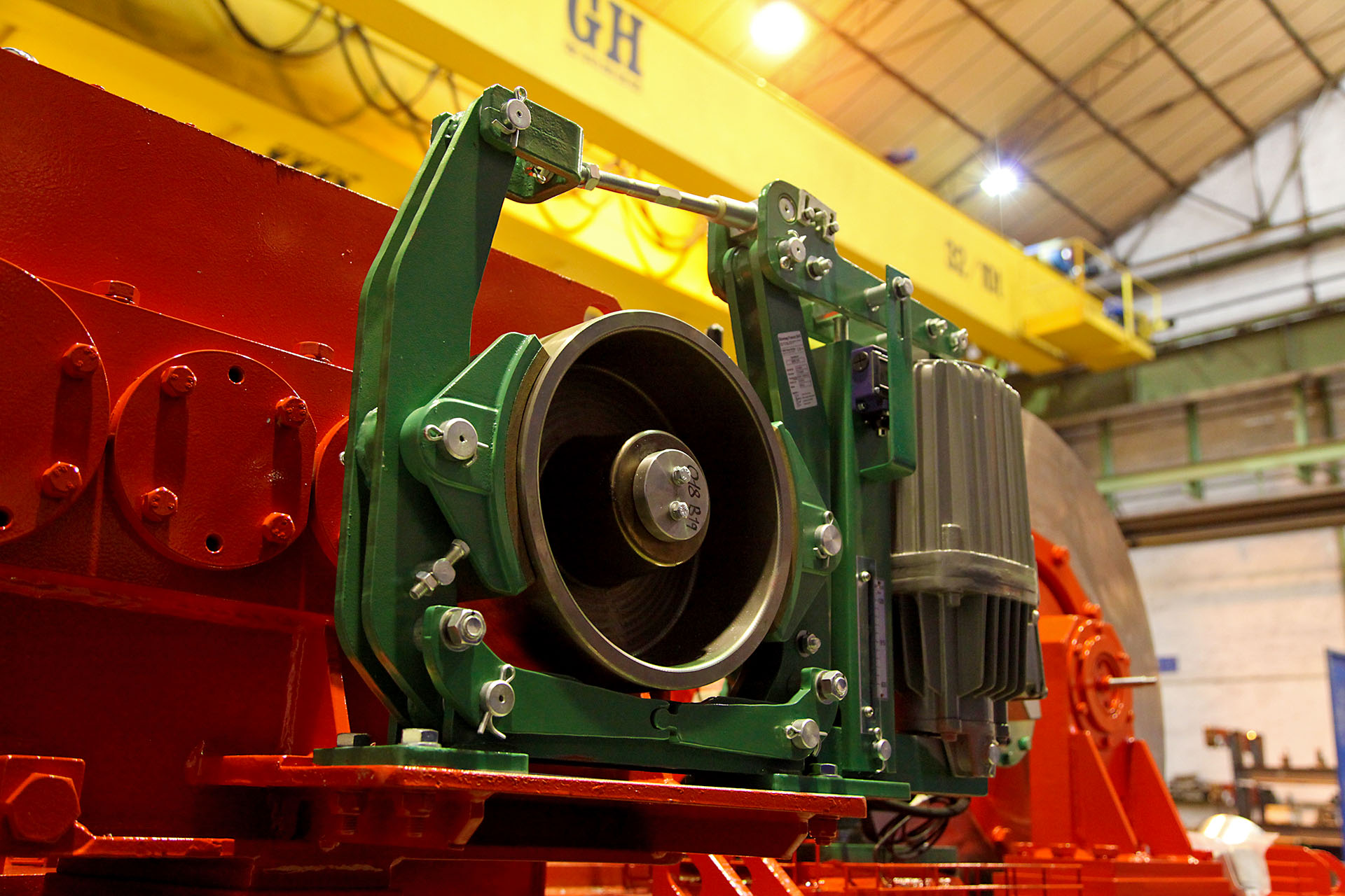 El carro en cuestión va montado sobre una grúa puente birraíl de 28,5 m de luz y una altura de elevación de 13,7 m. Este carro abierto, que trabaja en grupo M6 y que cuenta con motor Siemems y reductora GHF-4T, tiene instalados 3 frenos en la elevación principal: