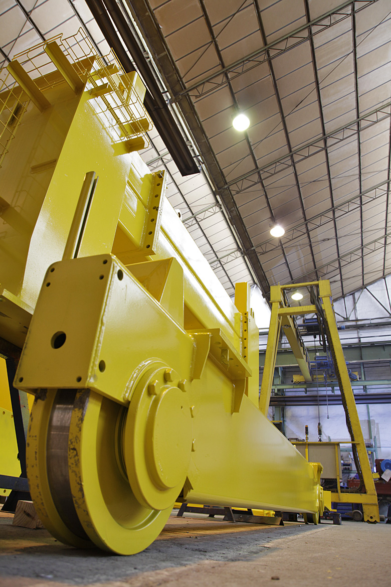 The hoist motion is performed by a GHF double girder hoist with end carriage, which will work with a 40 t spreader beam. The auxiliary hoist is a GHE single girder hoist in M6 working group both hoist and cross travel motion.