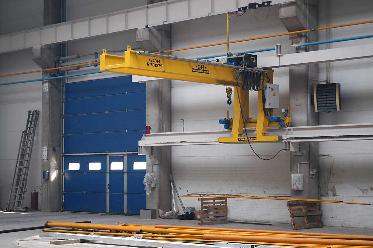 - 2 Suwnice konsolowe, udźwig=2t, długość ramienia=5 m, wysokość podnoszenia=4 m.