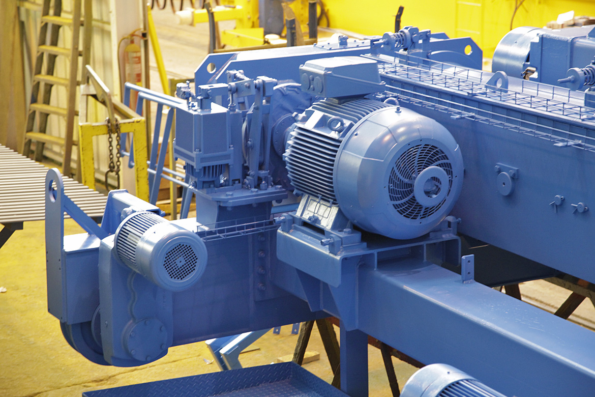 Manufacturing process of a double girder bridge crane with open winch 63/40 t capacity, 10.33 m span and a 14.3 m HOL.