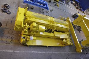 This bridge crane has an auxiliary hoist. A single girder hoist GHF 15 t with 34 m HOL. Cranes will be commanded from a cabin, master/slave, and will include anti-sway system.