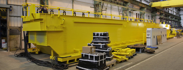 Double girder open winch with 2x125t capacity, motor-gearbox Siemens GHI-4T and M5 working group. The span of the crane is 27.78 m and the lifting height 15m.