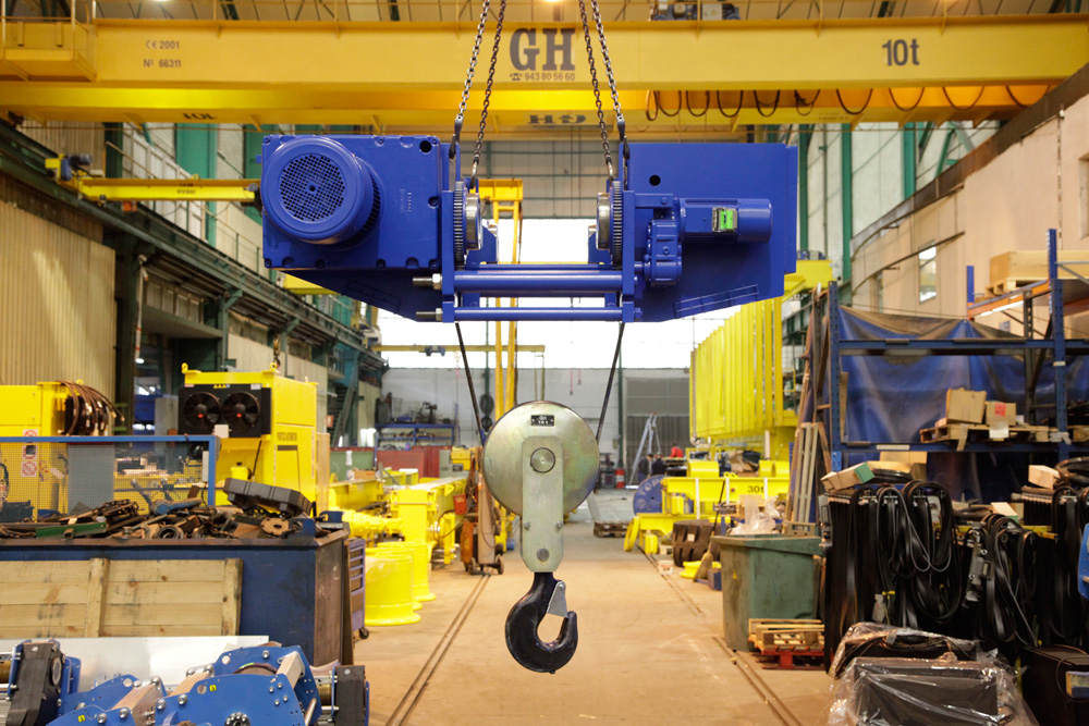 En las nuevas instalaciones de FERPAINEL, S.A. en Braga, hemos montado varias grúas puente con polipasto birrail de 16t y 12,5t de capacidad de elevación.